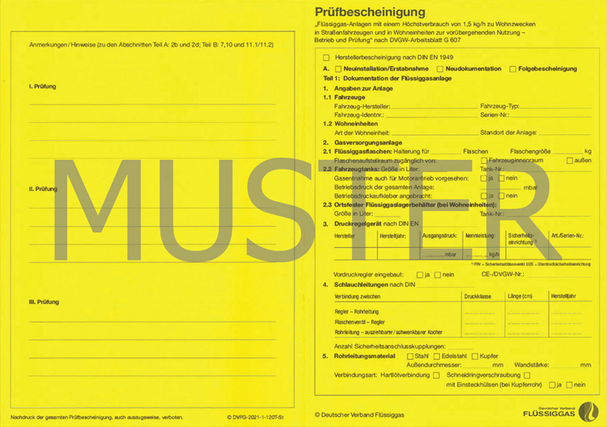 Gasprüfungen an Freizeitfahrzeugen nach G607